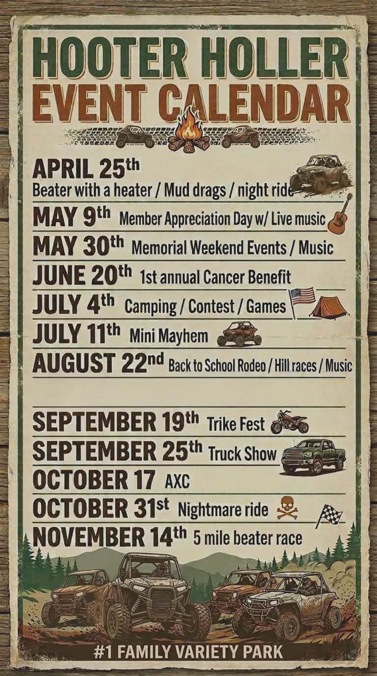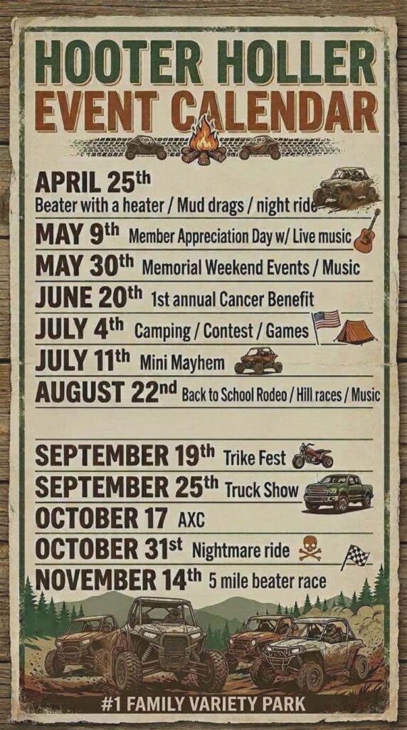 Andrew 4 hours ago Tags: 2026 event calandar Post navigation Previous The Gambler 500 Sept 5th – 7thNext Sasquatch Hunt April 25th 2026 More Stories Park Information Sasquatch Hunt April 25th 2026 4 hours ago Andrew Park Information The Gambler 500 Sept 5th – 7th 8 months ago Andrew Park Information Labor Day Weekend Blow Out 2025 8 months ago Andrew